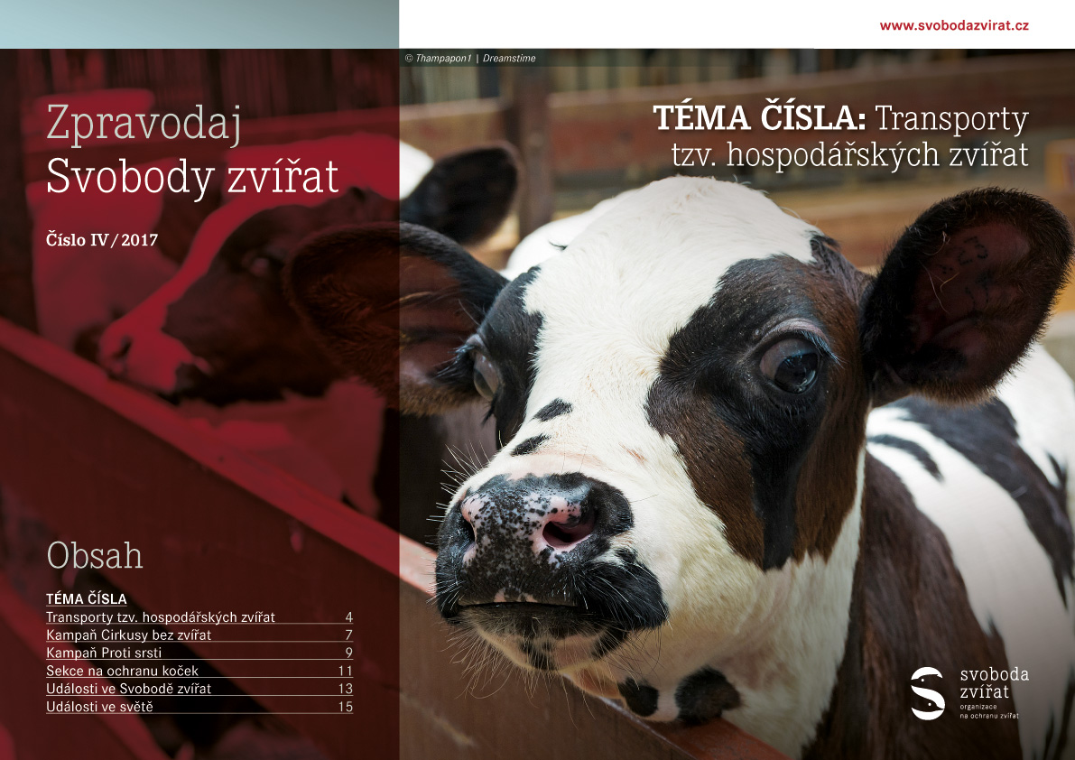 10 ledna, 2018 Nový Zpravodaj Svobody zvířat IV/2017 Právě vychází Zpravodaj IV/2017. Úvodní článek jsme tentokrát věnovali problematice transportů tzv. hospodářských zvířat...